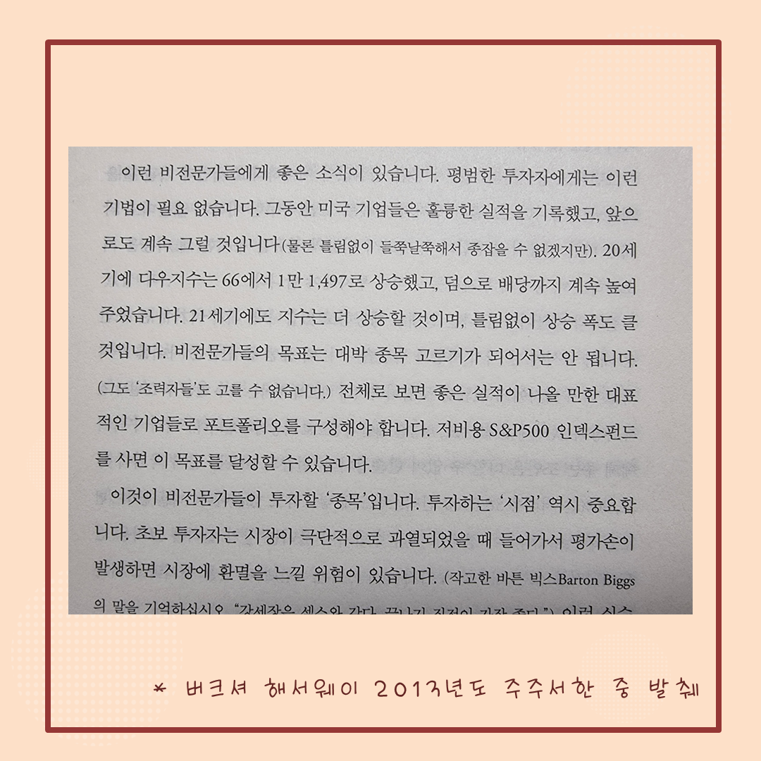 워런 버핏은 일반투자자들에게 여러차례에 걸쳐 미국 S&P500 인덱스 펀드 (ETF) 를 꾸준히 매수할 것을 추천했습니다. 이렇게만 하면 대부분의 기관투자자들이나 투자전문가들 보다 더 나은 성과를 거둘 수 있다는 것인데요.