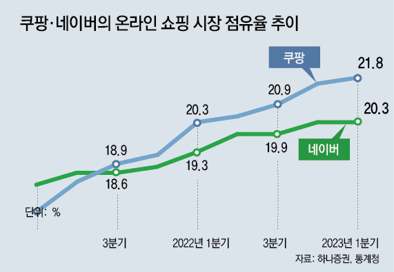 쿠팡-네이버 ‘점유율 30% 선점’ 패권경쟁 뜨겁다