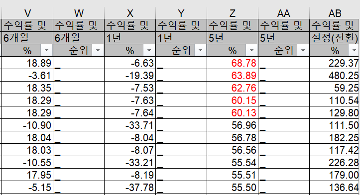 참고 ) 물론, 장기 운용되는 펀드들 중에서 세자리 숫자의 수익률을 기록하는 펀드들도 있으나, 펀드들 마다 설정일이 다르기 때문에 같은 구간의 비교를 위해 임의로 5년 수익률을 기준으로 비교해 보았습니다. 어느정도의 표본 평가는 된다고 생각됩니다.